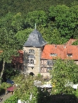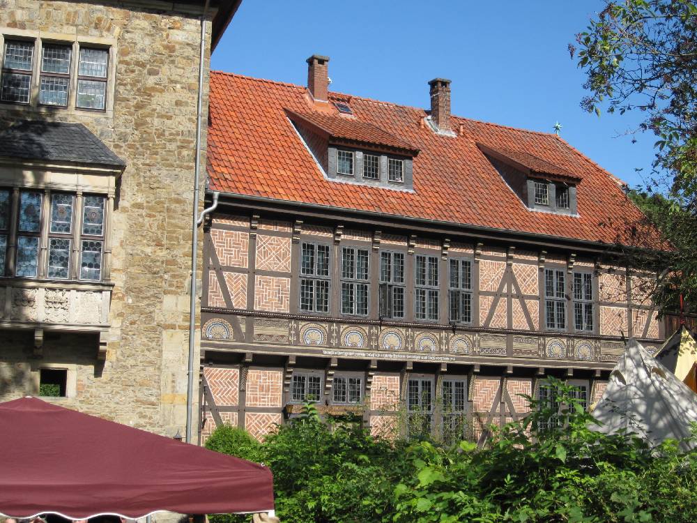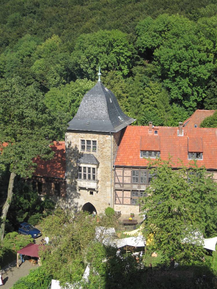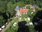 Die Schaumburg ist eine Burg im Gebiet der Stadt Rinteln im Landkreis Schaumburg in Niedersachsen. Der Burgname, ehemals Schauenburg, beruht vermutlich auf dem weiten Ausblick in das Wesertal. Sie war namensgebend für das Schaumburger Land, dessen Wahrzeichen die Burg seit dem 13. Jahrhundert darstellt. Der Landkreis Schaumburg trägt deshalb das Nesselblatt in seinem Wappen. Die Burg steht 12 km östlich der Rintelner Kernstadt in einem Waldgebiet auf dem 225 Meter hohen und kegelförmigen Nesselberg im Wesergebirge. Sie befindet sich oberhalb der Weser im Weserbergland. Unterhalb liegt der Rintelner Ortsteil „Schaumburg“ (früher: Rosenthal). Auf dem Nesselberg soll im 12. Jahrhundert ein Jagdhaus gestanden haben, das dem Rodenberger Ad... Dieser Artikel basiert auf dem Artikel Burg Schaumburg aus der freien Enzyklopädie Wikipedia und steht unter der Doppellizenz GNU-Lizenz für freie Dokumentation und Creative Commons CC-BY-SA 3.0 Unported (Kurzfassung). In der Wikipedia ist eine Liste der Autoren verfügbar. |