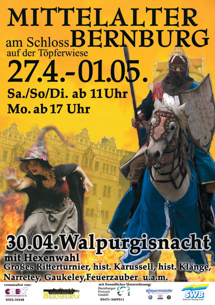 Als geborene Bernburgerin ist die Walburgisnacht, eine wichtige und die schönste Veranstaltung in Bernburg überhaupt. Das Mittelalterliche Treiben auf dem historischen Schlosshof versetzt mich in eine zwar schwere aber mystisch vergangene Zeit zurück. Es ist immer wieder ein echtes Erlebnis wenn wir extra aus Berlin anreisen und meine Freie Zeit es zulässt mich zwischen Gaukler, Speisen, Kunsthandwerk und heissem Madwein (Honigwein) im Tongefäss aufzuhalten. Die rockig mittelalterliche Musik, Bühnenprogramm, Kleidung der Markttreibenden, Bademöglichkeiten über Feuer und Flamme erhitztem Rosenwasser, zu den altertümlichen Klängen, Exotischer Dürfte, wo unsere Vergangenheit seine Wurzeln findet. Das sehr gut erhaltende Schloss Bernburg mit der Terrasse und dem Ausblick zum Auenwald über die Saale hinweg, lassen dann genau um meinen Geburtstag die Wiccas freundlich tanzen. Bei einem Eintrittspreis von 8,00€/ Tageskarte oder auch ermässigt, bekommt man ein reichhaltiges Angebot an Freude, Tollen Menschen, Rittertouniere auf Pferden und Sitzmöglichkeiten geboten. Für Gross und Klein geeignet. Vielen Dank an die Veranstalter . Dufte Grüße aus Berlin und viel Freude, sendet Doreen Hebestedt!