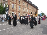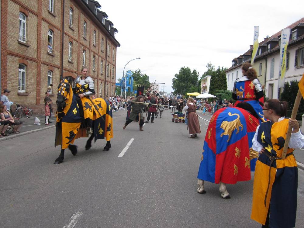 ..... Apropos Stadtgarde: Ein Trend, der von Jahr zu Jahr erfreulich zunimmt, ist die wachsende Zahl historischen Gruppen. Ob zu Fuß wie der “Hortus Ecclesiae” aus Schifferstadt oder die Templer-Ritter aus Böhl, ob neuerdings mit eigenem Festwagen wie die “Brüder des Wolfes” aus Speyer mit ihrem rollenden Wikinger-Schiff - Mittelalter boomt. Und das ist deshalb besonders schön, weil die Mitwirkenden dieser Gruppen ihre Freizeitbeschäftigung hör- und spürbar ernst nehmen. Das zeigte sich z.B. beim 950jährigen Dom, dem die Gruppen kniend ihre Reverenz erwiesen. Chapeau!.....