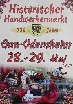 Die Gemeinde Gau-Odernheim, ehemalige Reichsstadt (1286 - 1579), pfälzisches Amtsstädtchen und rheinhessischer Marktflecken (ab 1816), feiert in diesem Jahr sein 725. Jubiläum. Aus diesem Anlass findet, im Rahmen der Feierlichkeiten, ein Historischer Handwerkermarkt statt.