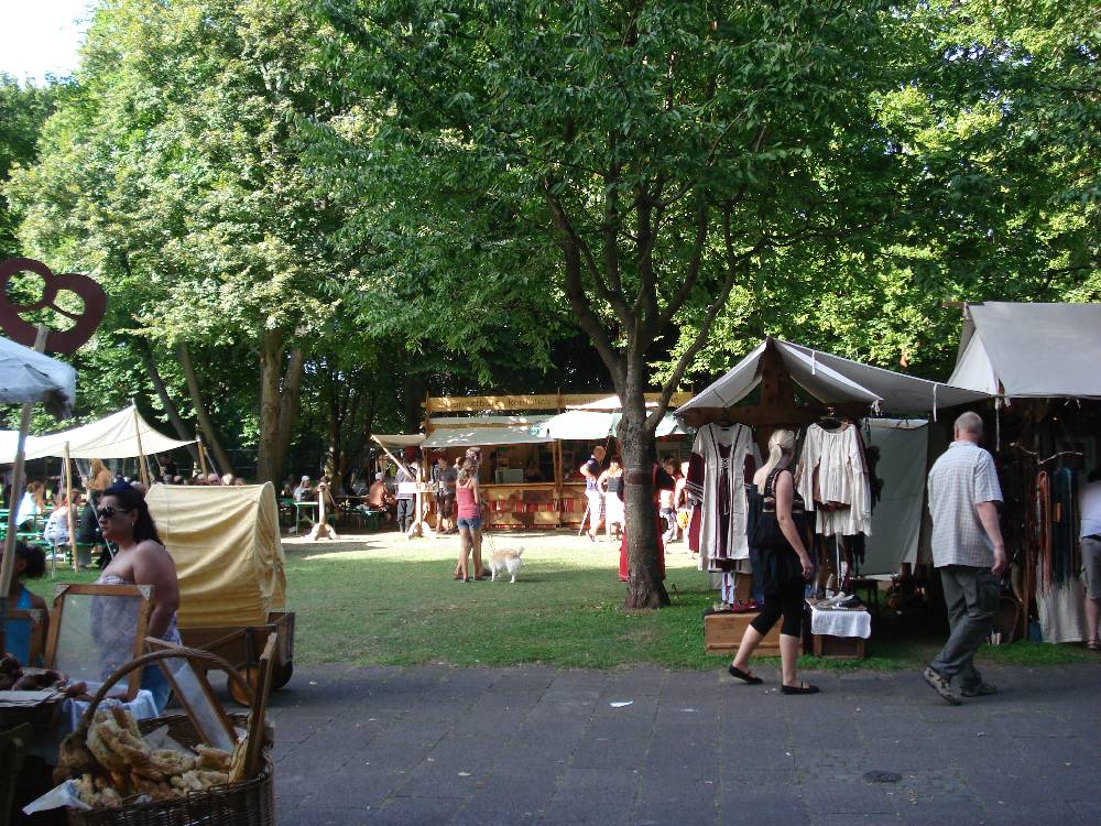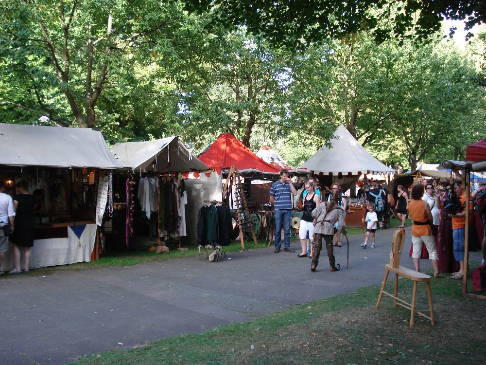 Wem das Gedränge zuviel wurde, der konnte sich an vielen Stellen etwas zurückziehen, da die Veranstalter beim Aufbau (anscheinend extra) darauf geachtet haben, dass es ausreichend Ruheinseln auf dem Markt gibt (am Rande einer Wiese, zwischen den Ständen etc). Essen und Trinken gab es ausreichend und in den verschiedensten Varianten. Die Preise, vor allem bei den Getränken, fand ich recht vernünftig... und bei der vorherrschenden Hitze mussten einige Getränke gekauft werden!