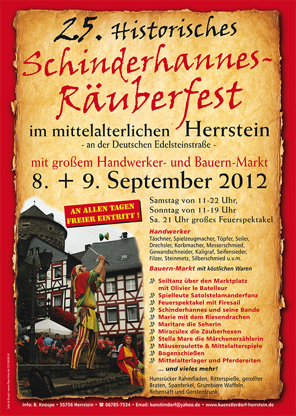 Das Schinderhannes-Räuberfest findet zum 25. Mal in den Gassen des mittelalterlichen Ortskerns von Herrstein a.d. deutschen Edelsteinstraße statt.