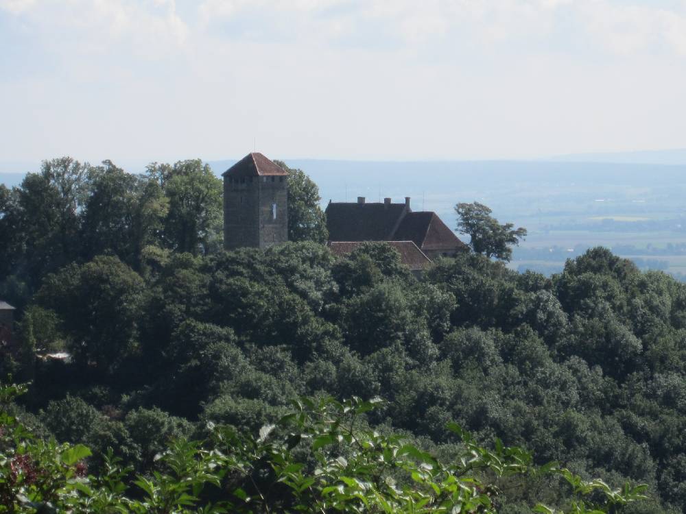 Die Schaumburg ist eine Burg im Gebiet der Stadt Rinteln im Landkreis Schaumburg in Niedersachsen. Der Burgname, ehemals Schauenburg, beruht vermutlich auf dem weiten Ausblick in das Wesertal. Sie war namensgebend für das Schaumburger Land, dessen Wahrzeichen die Burg seit dem 13. Jahrhundert darstellt. Der Landkreis Schaumburg trägt deshalb das Nesselblatt in seinem Wappen. Die Burg steht 12 km östlich der Rintelner Kernstadt in einem Waldgebiet auf dem 225 Meter hohen und kegelförmigen Nesselberg im Wesergebirge. Sie befindet sich oberhalb der Weser im Weserbergland. Unterhalb liegt der Rintelner Ortsteil „Schaumburg“ (früher: Rosenthal). Auf dem Nesselberg soll im 12. Jahrhundert ein Jagdhaus gestanden haben, das dem Rodenberger Ad... Dieser Artikel basiert auf dem Artikel Burg Schaumburg aus der freien Enzyklopädie Wikipedia und steht unter der Doppellizenz GNU-Lizenz für freie Dokumentation und Creative Commons CC-BY-SA 3.0 Unported (Kurzfassung). In der Wikipedia ist eine Liste der Autoren verfügbar. |
