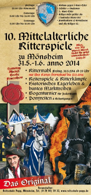 Bereits das 10. Mal in Folge finden auch 2014 die Ritterspiele zu Mönsheim statt.