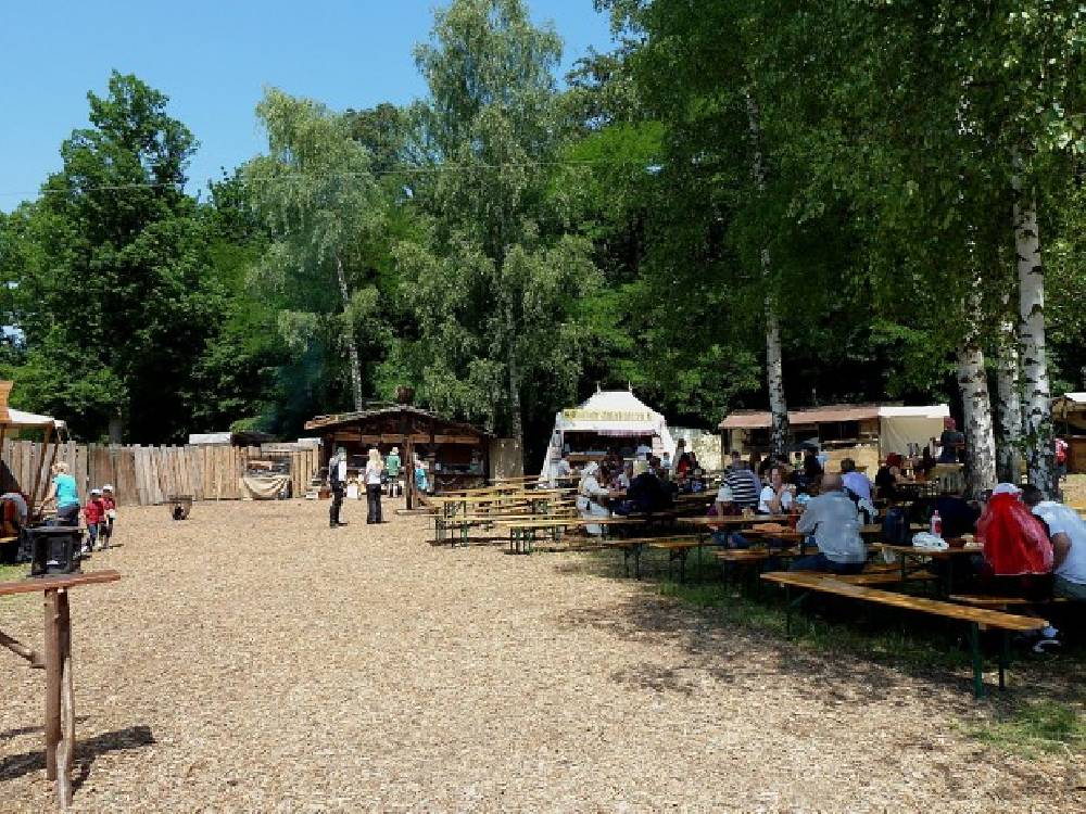 Nicht zu vergessen: Es wird gar deftig mittelalterlich Speis und Trank kredenzt. Eine große Wildbräterei mit Hirsch- und Wildschweinbraten, Rahmfleck, Grillfackel, Sau am Buchenholzgrill, Knobibrot, Schweinswürst, Vollkornwaffeln, Flammkuchen,... , sowie ein gut’s natürtrübes Bier, Met und Beerenfruchtweine, Wasser aus dem Brunnen (nicht wirklich), Kaffee, Kakao und für die Naschkatzen persische und morgendländische süsse Naschereien.